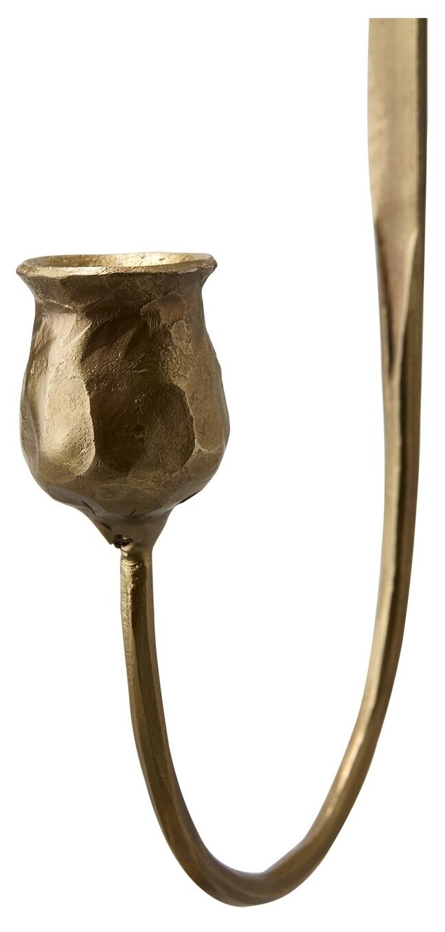 Väggljusstake i antikguldfärgad metall som tillför en mjuk, elegant känsla och ett varmt sken i rummet. Den nätta siluetten och de handgjorda detaljerna, med en dekorativ rosett som pricken över i, gör den lika vacker tänd som släckt. Perfekt att placera i hallen, vid sängen eller som en stämningshöjare i vardagsrummet. En tidlös inredningsdetalj som ger väggen liv och skapar en ombonad atmosfär.