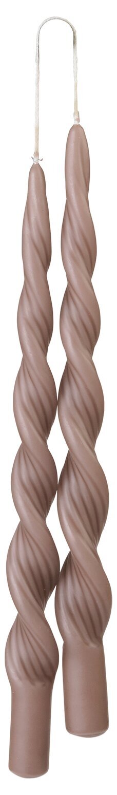 På bilden syns två identiska ljus, båda från produkten Twisted candle - ROUGE av varumärket Bahne, som finns hos Ljuslyktor.nu. Ljusen har en intressant och iögonfallande design med en vriden struktur, vilket ger dem en distinkt och dynamisk form. Det geometriska mönstret är symmetriskt och går i en spiral längs ljusets längd, vilket skapar en vågrörelse runt den vertikala axeln.