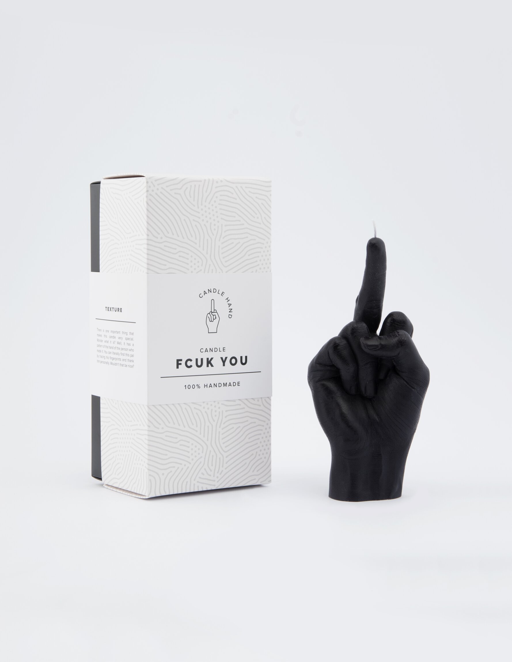 På bilden ser vi en distinkt ljusprodukt från butiken Ljuslyktor.nu, specialiserad på unika designljus. Ljuset på bilden är från Candlehand, ett varumärke känt för sina kreativa och handgjorda stearinljus. Den specifika produkten, Candle Hand F*ck You, är formad som en hand som gör ett tydligt tecken med fingret. Ljuset har en detaljerad, realistisk struktur som fångar varje linje och veck i handen, vilket ger en imponerande visuell effekt.