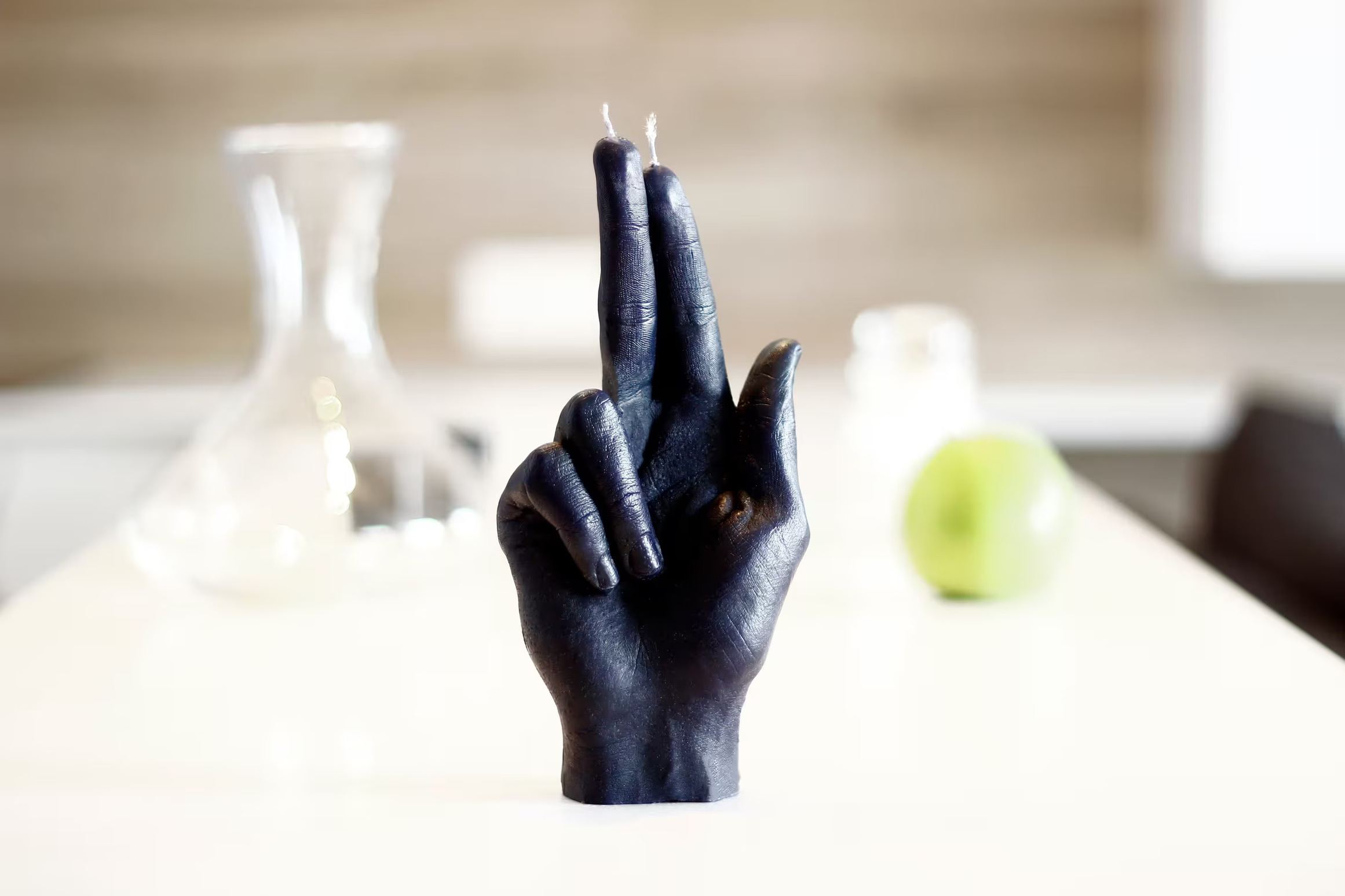 Ett unikt & uttrycksfullt ljus som ger karaktär & personlighet som inredningsdetalj till hemmet. Varje ljus är 100% handgjort & därmed unikt, storleken är som en riktig hand med hudstrukturer såsom veck & linjer, så verklig en hand ett ljus kan bli.