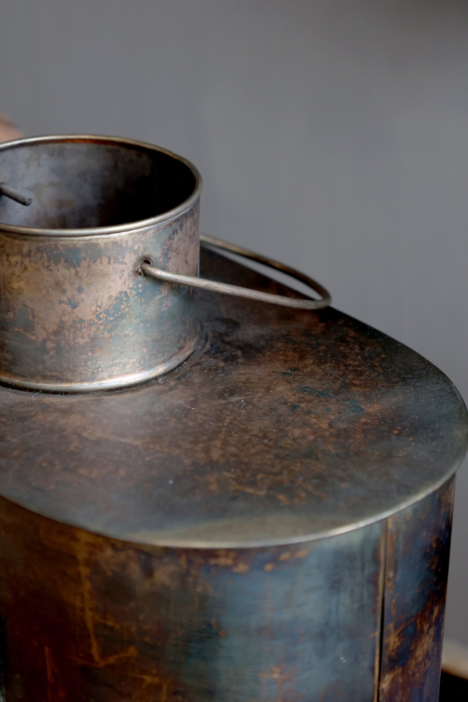 Skapa en varm och inbjudande atmosfär med denna rustika lykta i antik stil. Den unika metallfinishen och de vackra glasdetaljerna ger ett charmigt och tidlöst uttryck som passar perfekt i både moderna och lantliga hem. Placera ett blockljus inuti för att sprida ett mjukt och stämningsfullt sken som lyfter varje rum.