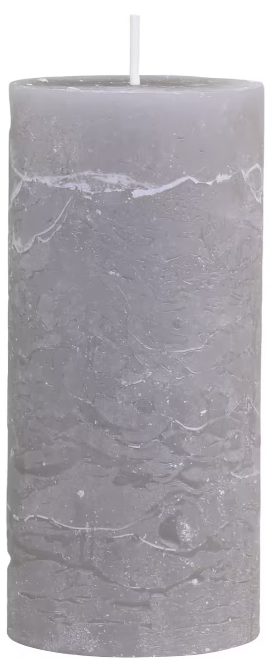 På bilden ser vi ett blockljus från Chic Antique som utgör ett stilrent inslag i Ljuslyktor.nu:s sortiment. Det cylinderformade ljuset har en rustik yta i en subtil, fransk grå nyans. Ljuset har en robust och solid struktur med tydliga, texturerade detaljeringar över hela ytan, vilket skapar en intressant kontrast i ljusets enkelhet. Dessa mönster ger ljuset en handgjord känsla som skildrar en vacker patina och ett naturligt åldrande.