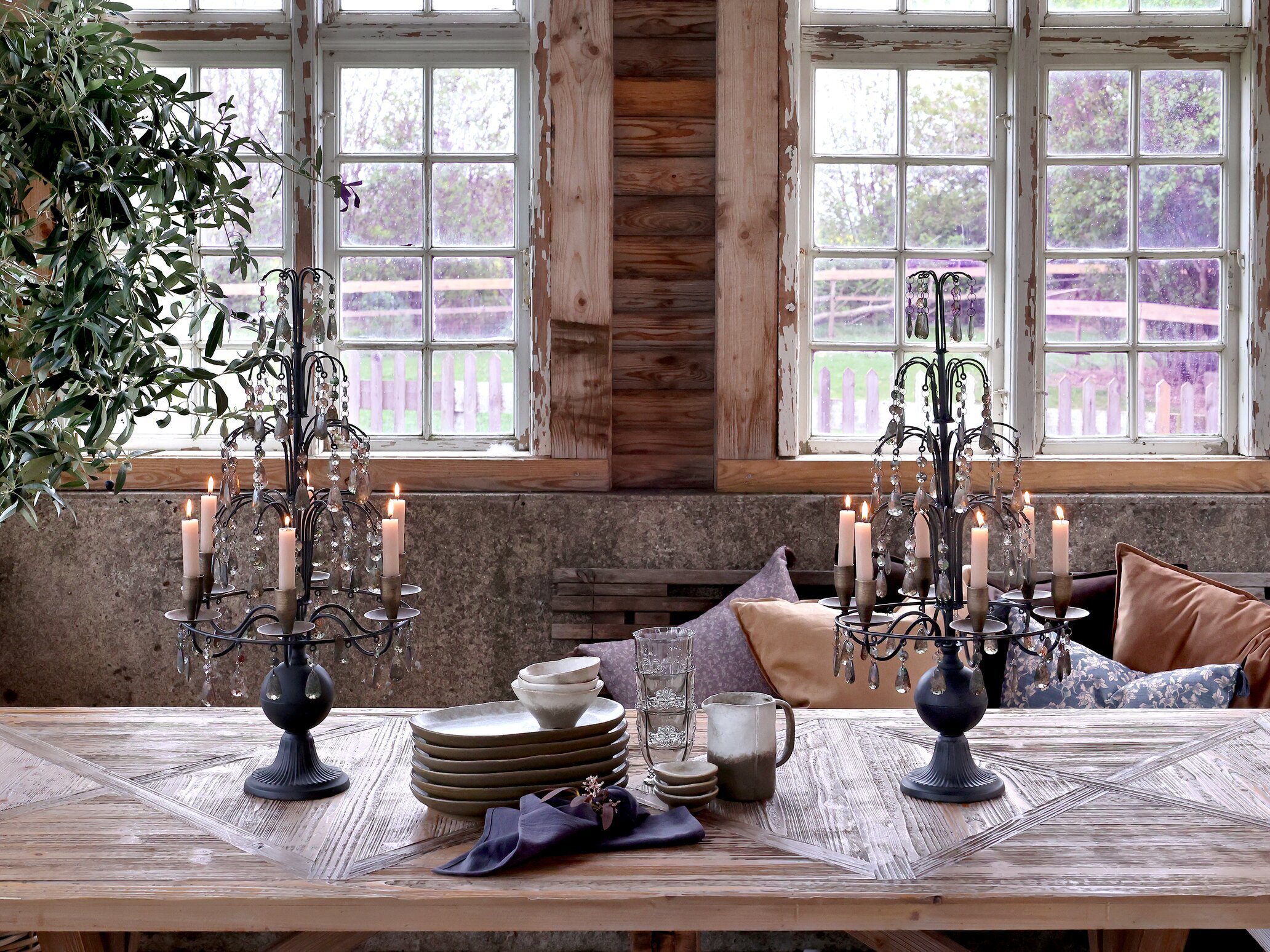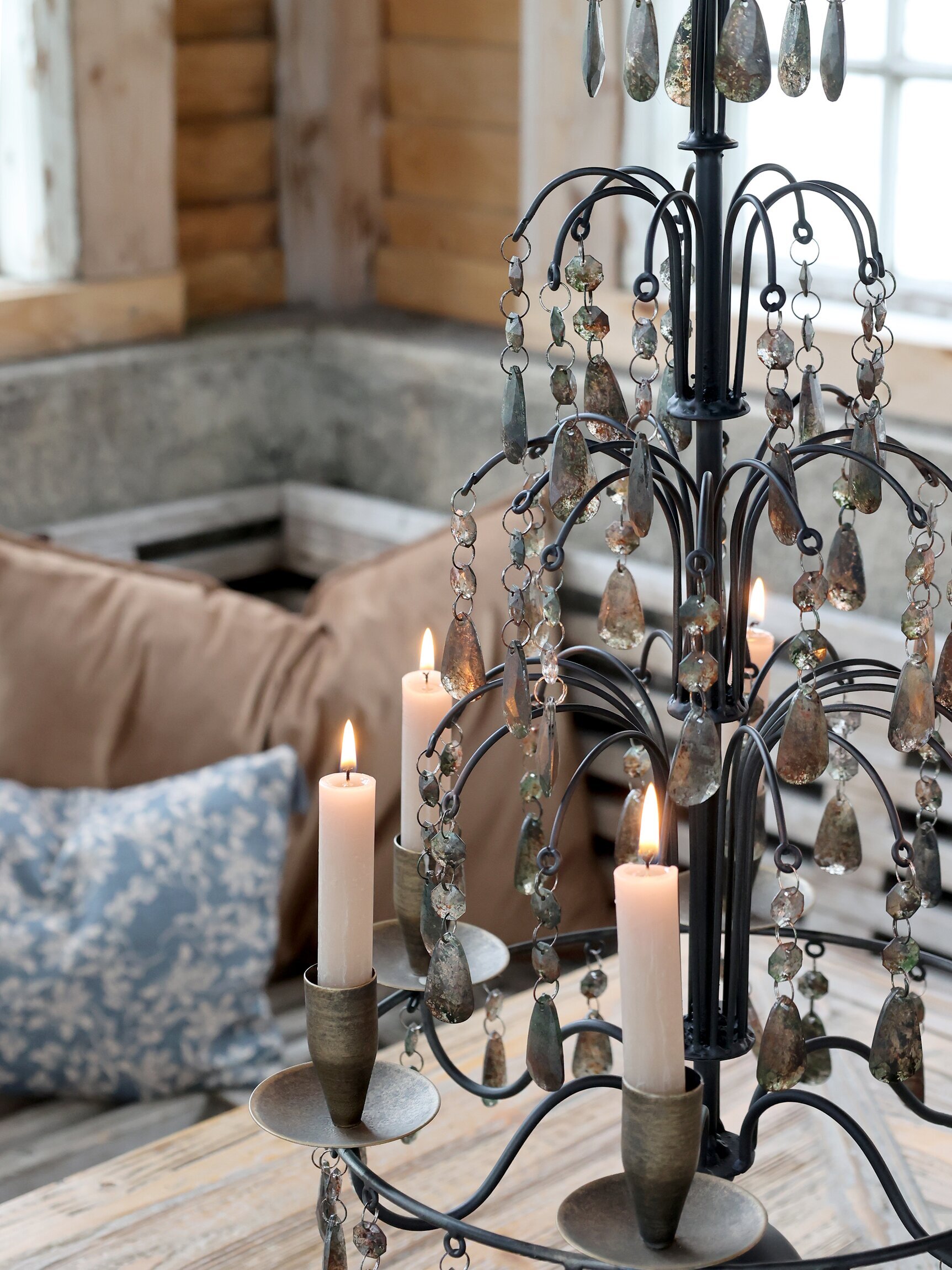 Skapa en stämningsfull och elegant atmosfär med denna praktfulla kandelaber från Chic Antique. Den klassiska designen med hängande prismor och plats för sex ljus sprider ett vackert sken och blir ett iögonfallande blickfång i rummet. Perfekt för festdukningen, middagsbordet eller som dekorativ detalj året runt.