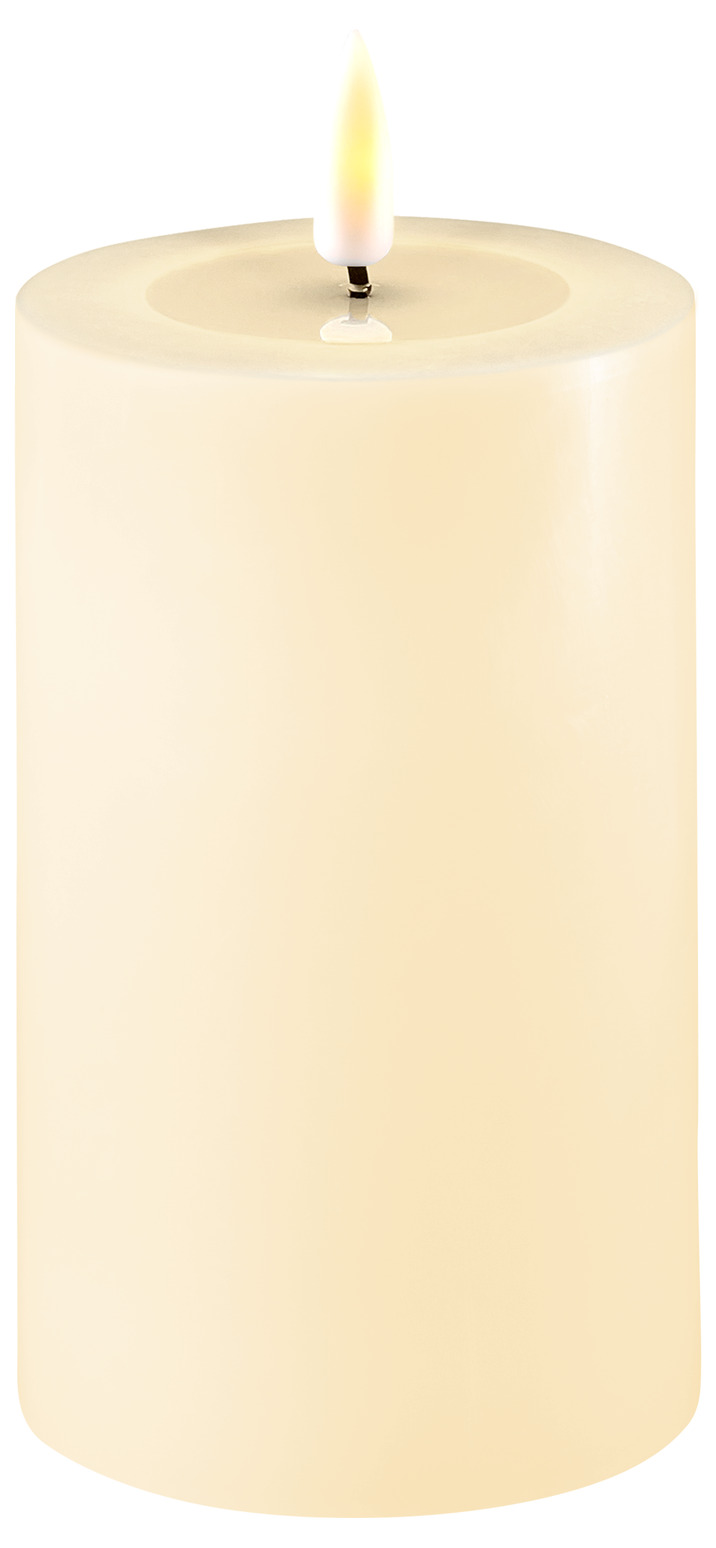 Denna bild visar en elegant och stilbalanserad blockljus-LED från Deluxe Homeart, som finns att köpa hos Ljuslyktor.nu. Ljusets färg är en mild crème, som ger ett mjukt och behagligt intryck. Dimensionerna på detta blockljus är 7,5 cm i bredd och 12,5 cm i höjd, vilket gör det till en perfekt storlek för mångsidig användning i olika inredningssituationer.