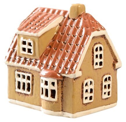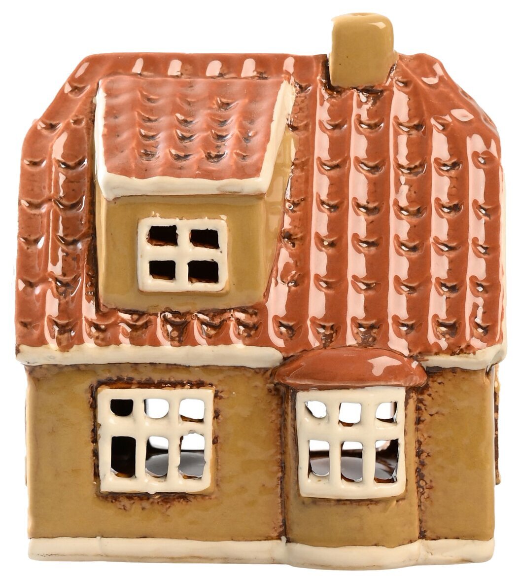 Detta charmiga cottage-inspirerade ljuslyktehus är fyllt med små detaljer som ger en hemtrevlig och klassisk känsla. Den varma glasyren, de rundade fönstren och det vackra taket skapar ett uttryck som påminner om traditionella lantliga hus. Keramiken ger lyktan en gedigen och dekorativ karaktär som gör den lika fin med eller utan ljus.