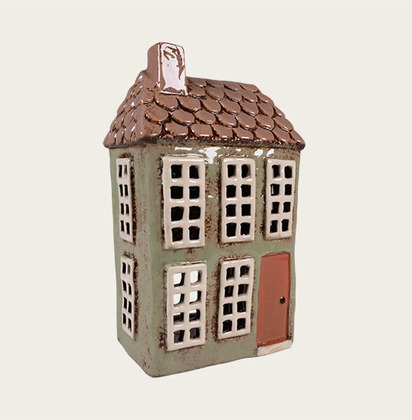 Charmigt keramikhus som med sin gröna fasad, bruna tak och fina fönster sprider ett mjukt, varmt sken när du tänder ett värmeljus inuti. Läs mer