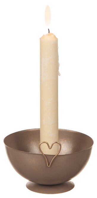 Ljusstake i hamrad plåt med guldhjärta, ljusstaken har plats för ett kronljus. Från Different Design. Läs mer
