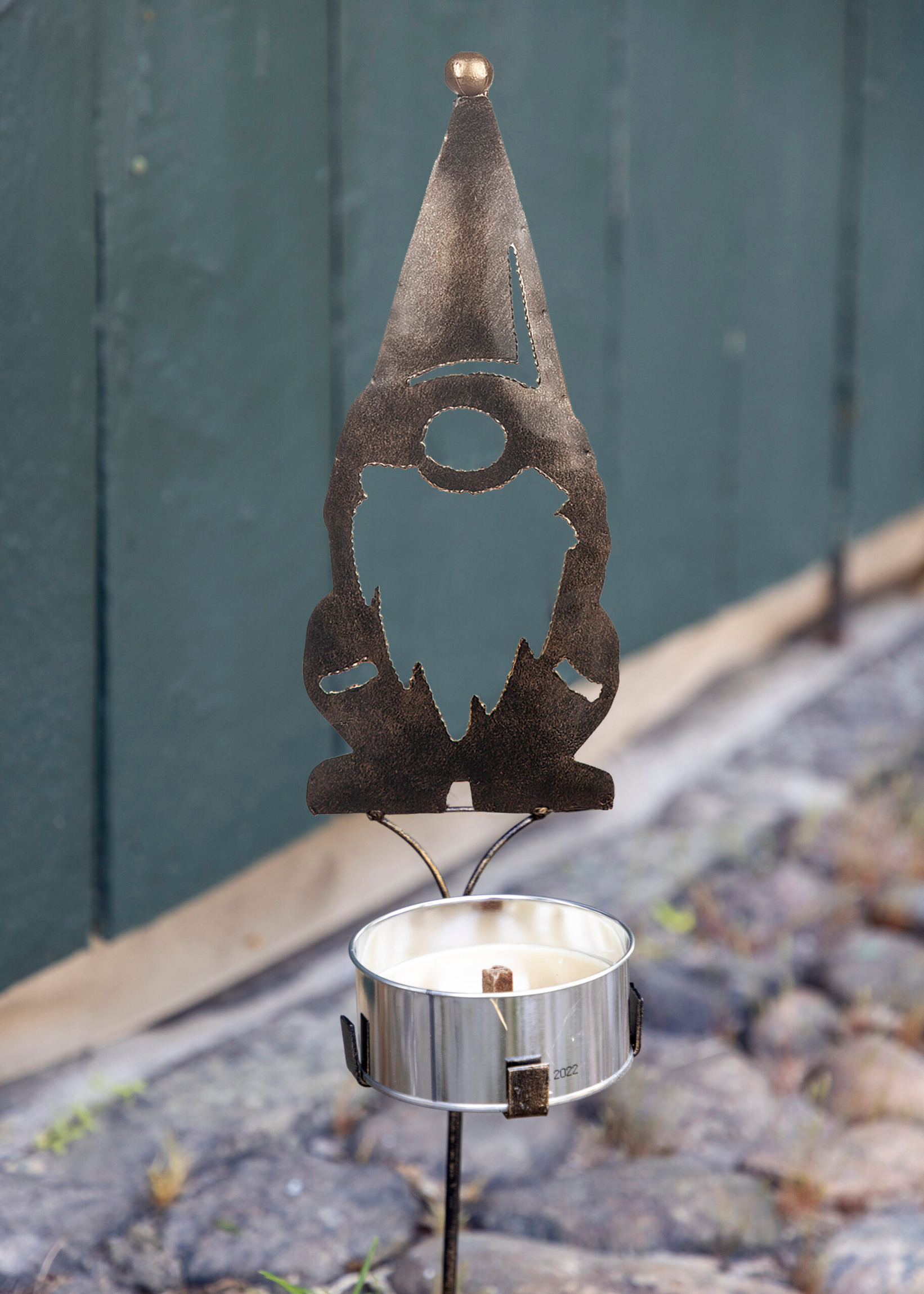 Dekorativ tomte i hamrad plåt med plats för marschall, från Different Design.