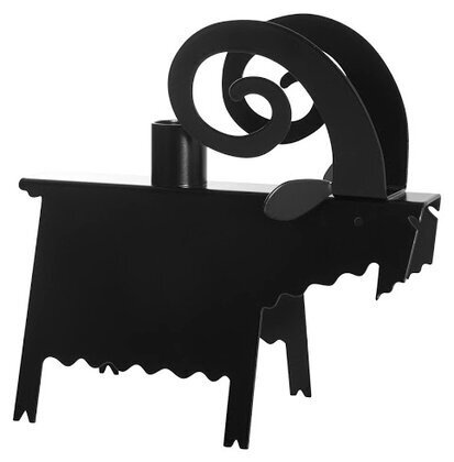 Ljusstaken är formad som en bock och framstår i en djup, svart färg, vilket ger den både en modern och tidlös känsla. Dess kropp är skapad i en stiliserad, nästan geometrisk form som ger produkten en distinkt profil, och den mattsvarta ytan bidrar till bockens grafiska uttryck.