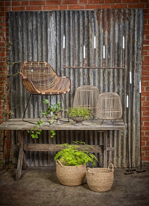 Vacker rustik ljusstake med rostdetaljer som kan hängas mot vägg, fönster eller i tak. Rymmer totalt 7 stycken kronljus men kan även dekoreras med gröna slingrande växter som mjukar upp den industriella stilen.