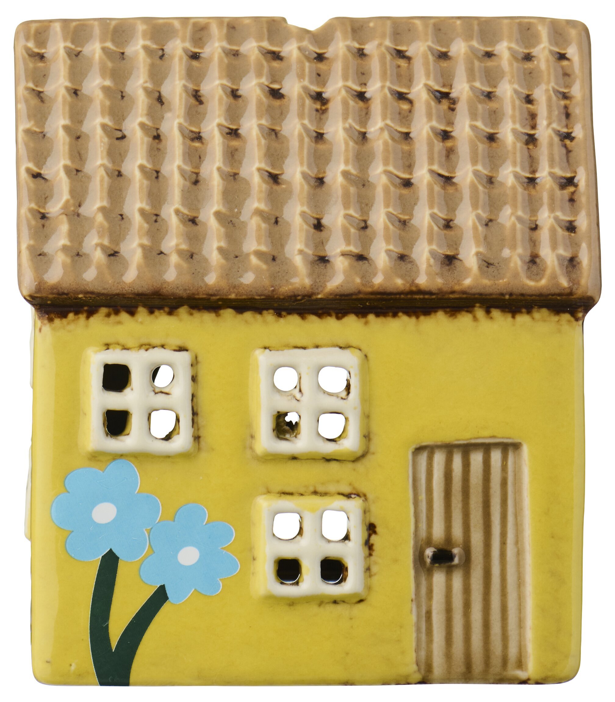 Den här ljuslyktan i form av ett litet hus är en riktig mysdetalj som ger hemmet en varm och ombonad känsla. Med sin solgula fasad, fina fönster och det rustika taket blir den ett charmigt blickfång i inredningen.