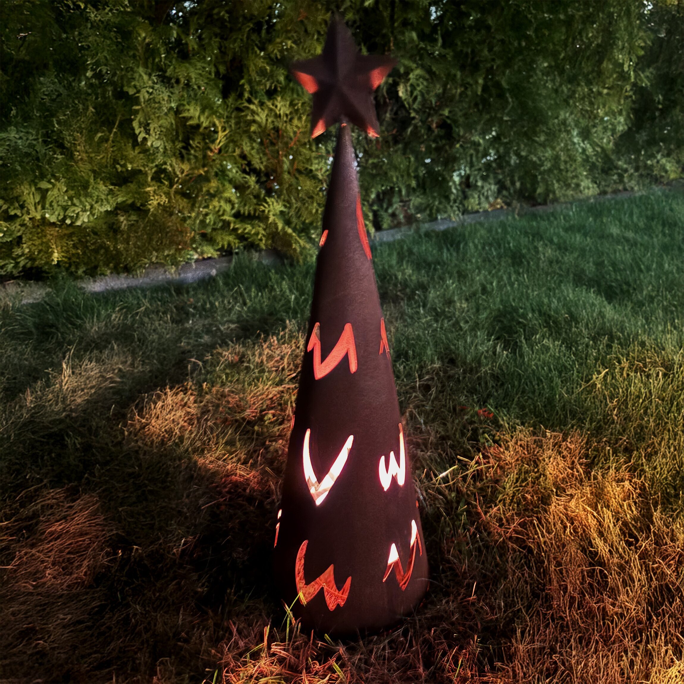 Låt ljuset sprida värme och magi i höst- och vintermörkret. Denna vackra marschallhållare i rostig metall har en elegant konform med utskurna detaljer och en stjärna i toppen. När lågan brinner inuti skapas ett levande sken som lyser upp både trädgård, altan och entré. Perfekt som dekoration till jul, fest eller för att skapa extra mysig stämning året runt.