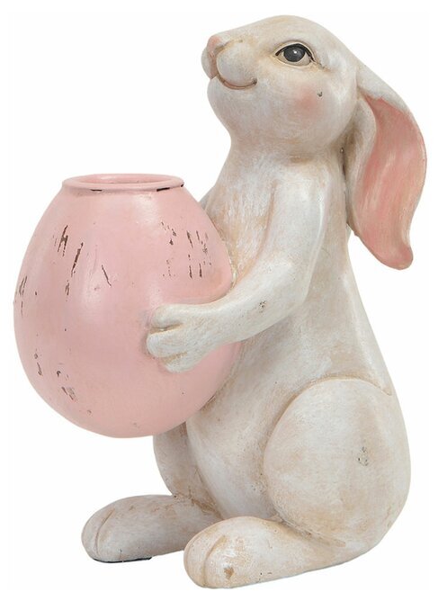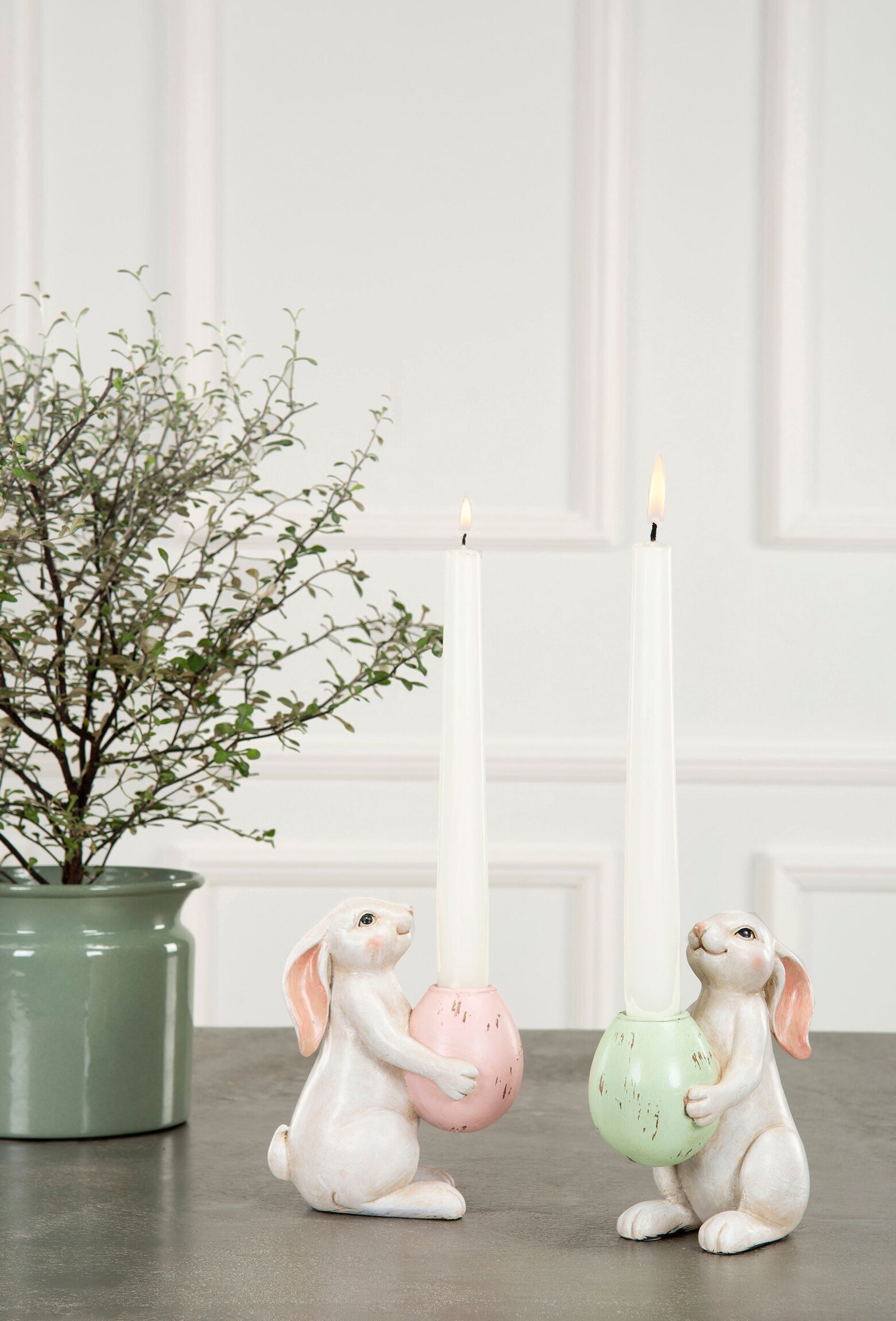 En söt och stämningsfull ljusstake formad som en liten kanin som håller ett pastellfärgat ägg. Den mjuka färgskalan och de fina detaljerna ger en varm och charmig känsla – perfekt till påsk, våren eller som en lekfull detalj året om.