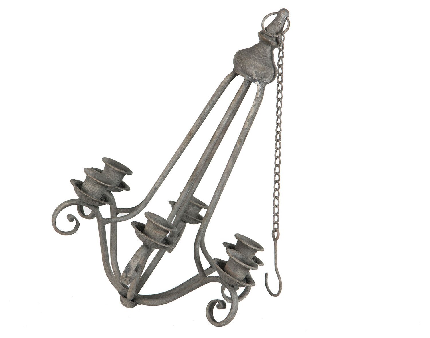 En klassisk ljuskrona i smide med plats för sex kronljus. Den rustika designen med mjukt svängda armar och antik finish gör den till ett vackert inslag i hemmet.