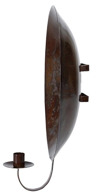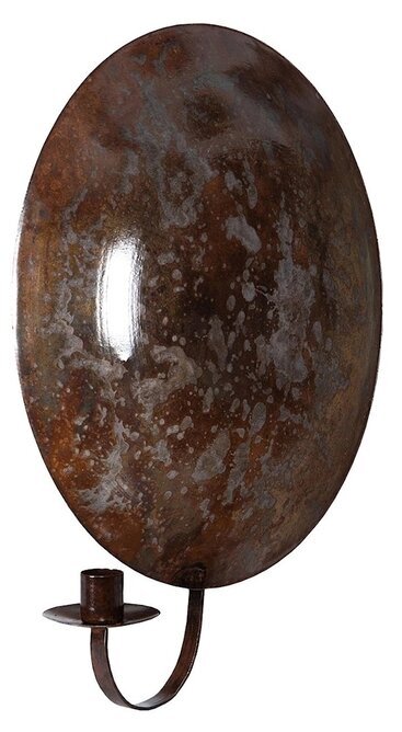 Stilfull väggljusstake i rostig metall som blir en vacker detalj på väggen och skapar en varm, stämningsfull atmosfär i hemmet. Den stora runda bakplattan förstärker skenet från ljuset och ger rummet en mysig lyster. Perfekt att kombinera med både klassiska och moderna inredningsstilar.