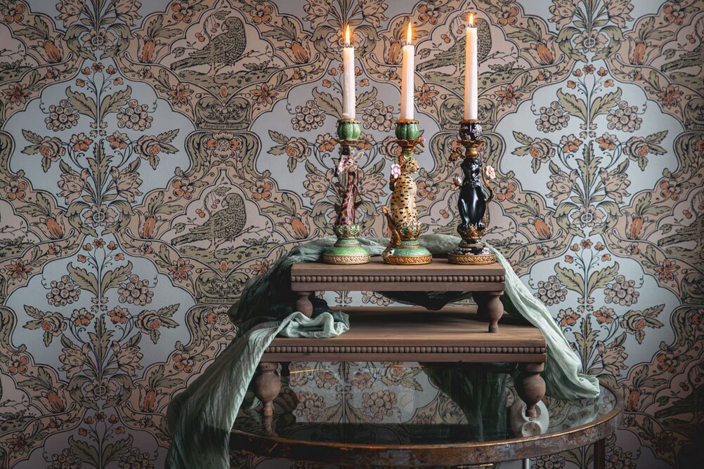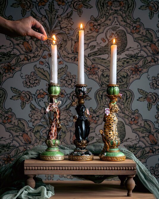 Ljusstaken passar lika fint ensam som tillsammans med andra djurmotiv och skapar en stämningsfull helhet på bordet, i fönstret eller på en hylla. När ljuset tänds framhävs detaljerna och ger rummet ett varmt och inbjudande sken.