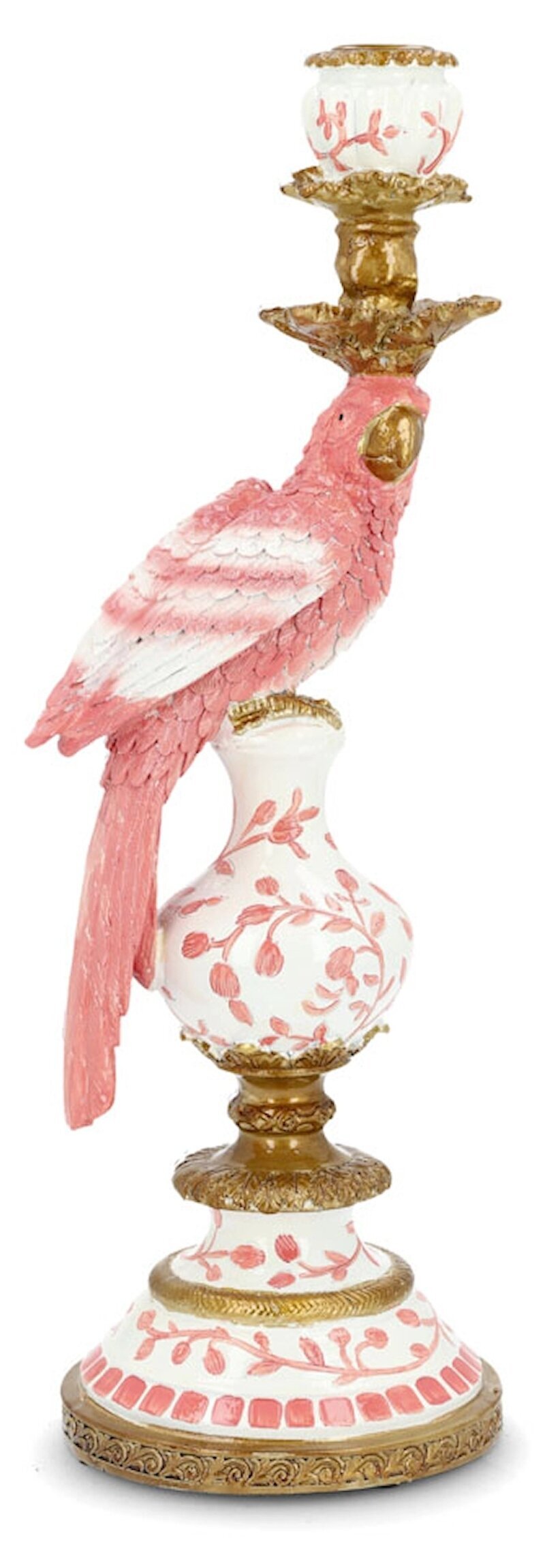 En elegant ljusstake med vacker papegoja som ger hemmet en charmig och exklusiv känsla. De handmålade detaljerna i rosa och guld skapar ett lyxigt uttryck, och den klassiska formen gör den lika dekorativ med eller utan ljus. Placera den på ett sidobord, i fönstret eller som en del av en vacker dukning - den blir alltid ett blickfång.