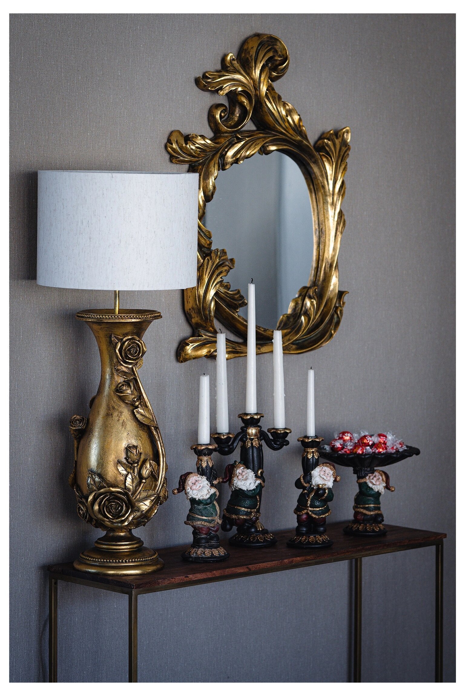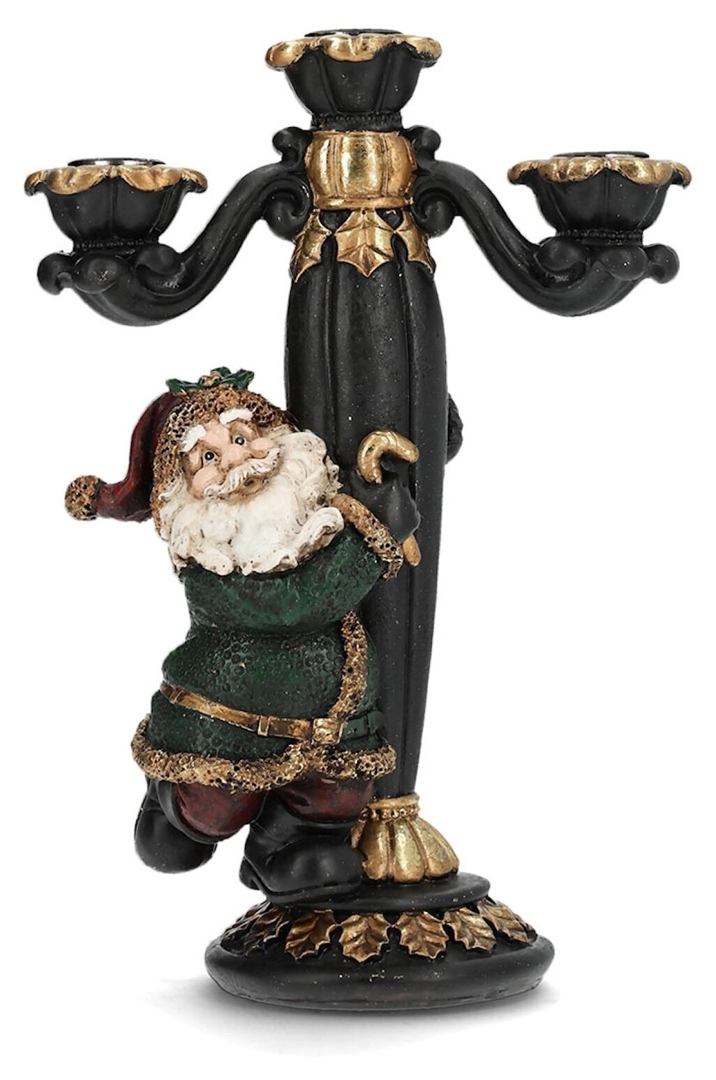 En stämningsfull ljusstake prydd med en charmig tomte som håller sig fast vid foten. Ljusstaken har plats för tre ljus och blir en perfekt juldekoration som sprider både ljus och glädje i hemmet.