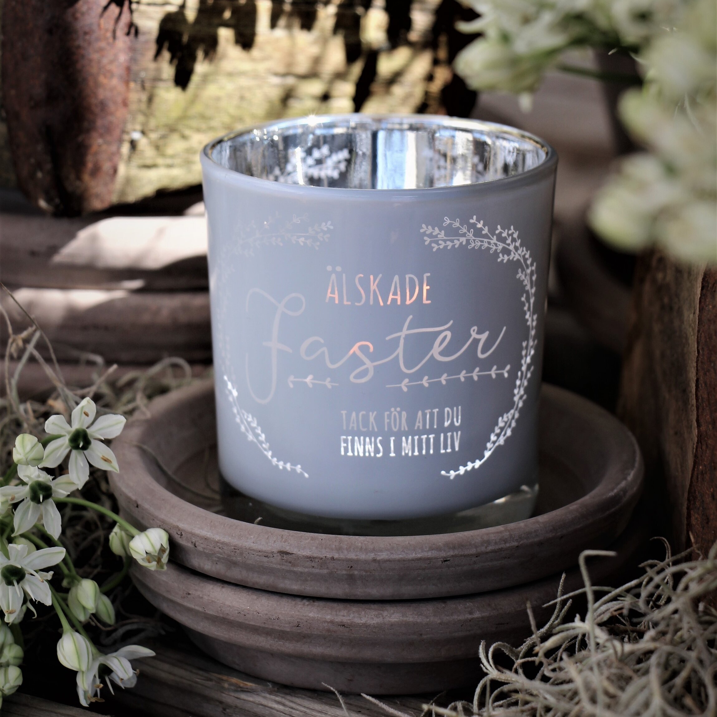 Den här bilden är ett utmärkt exempel på hur detaljer, form och sammanhang kan samverka för att skapa en produktpresentation som inte bara informerar utan också engagerar. Ljuslyktan Älskade Faster kan bli en betydelsefull gåva, något som bilden på ett diskret sätt kommunicerar genom sin layout och design.