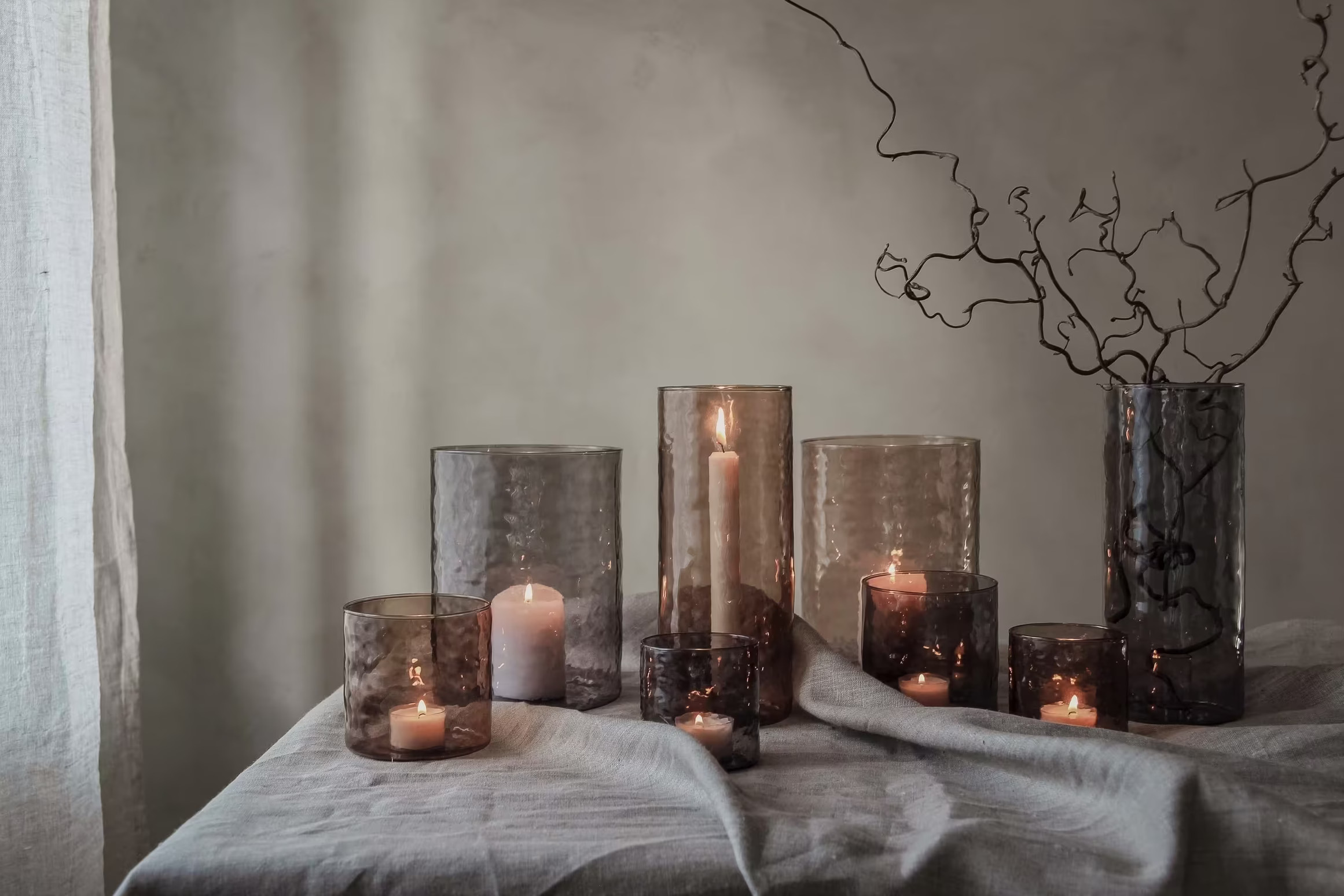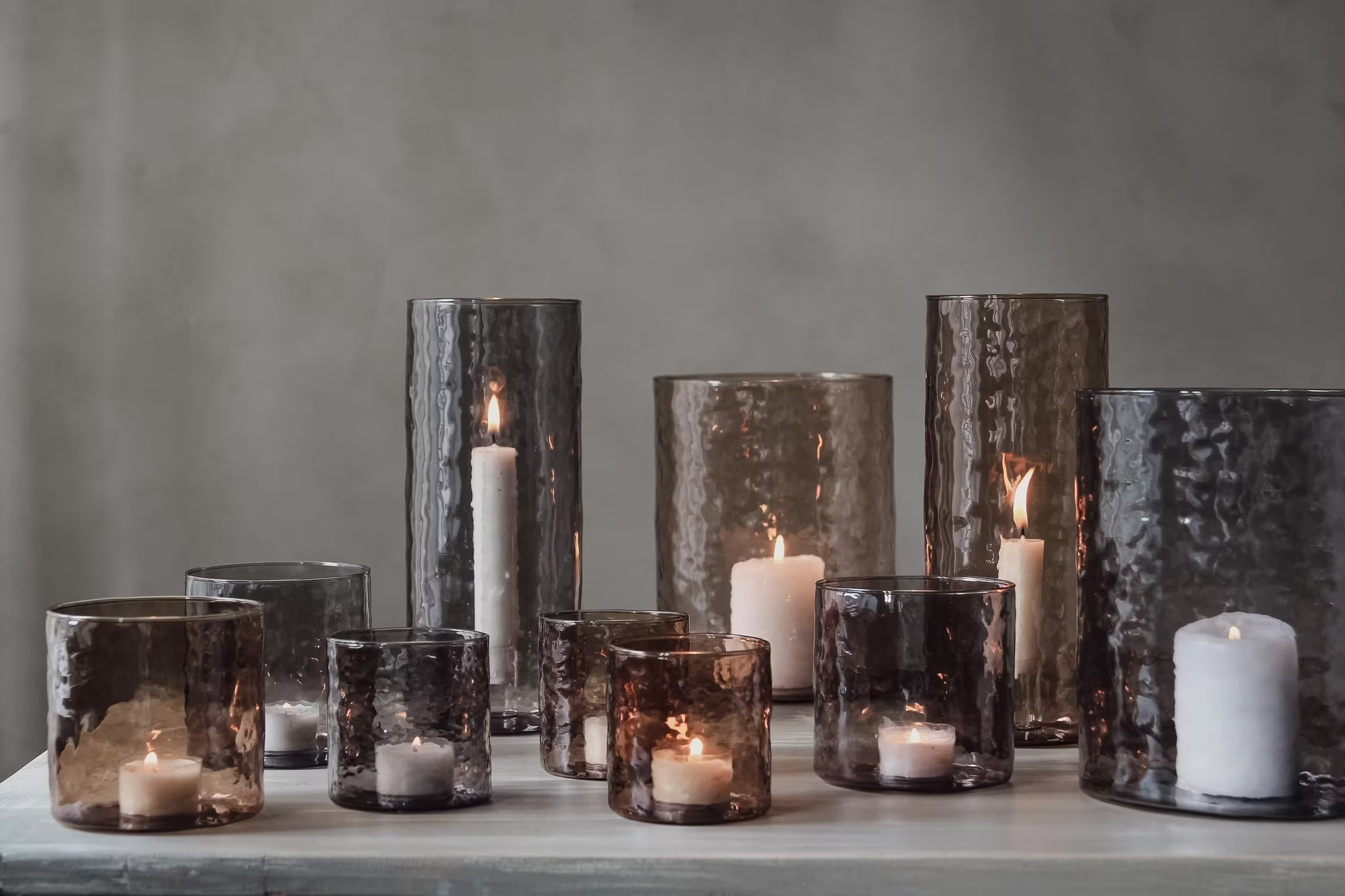 Vacker ljuslykta i hamrat borosilikatglas. Fin att dekorera med ljus & dekorationer efter säsong. Från Majas Cottage.