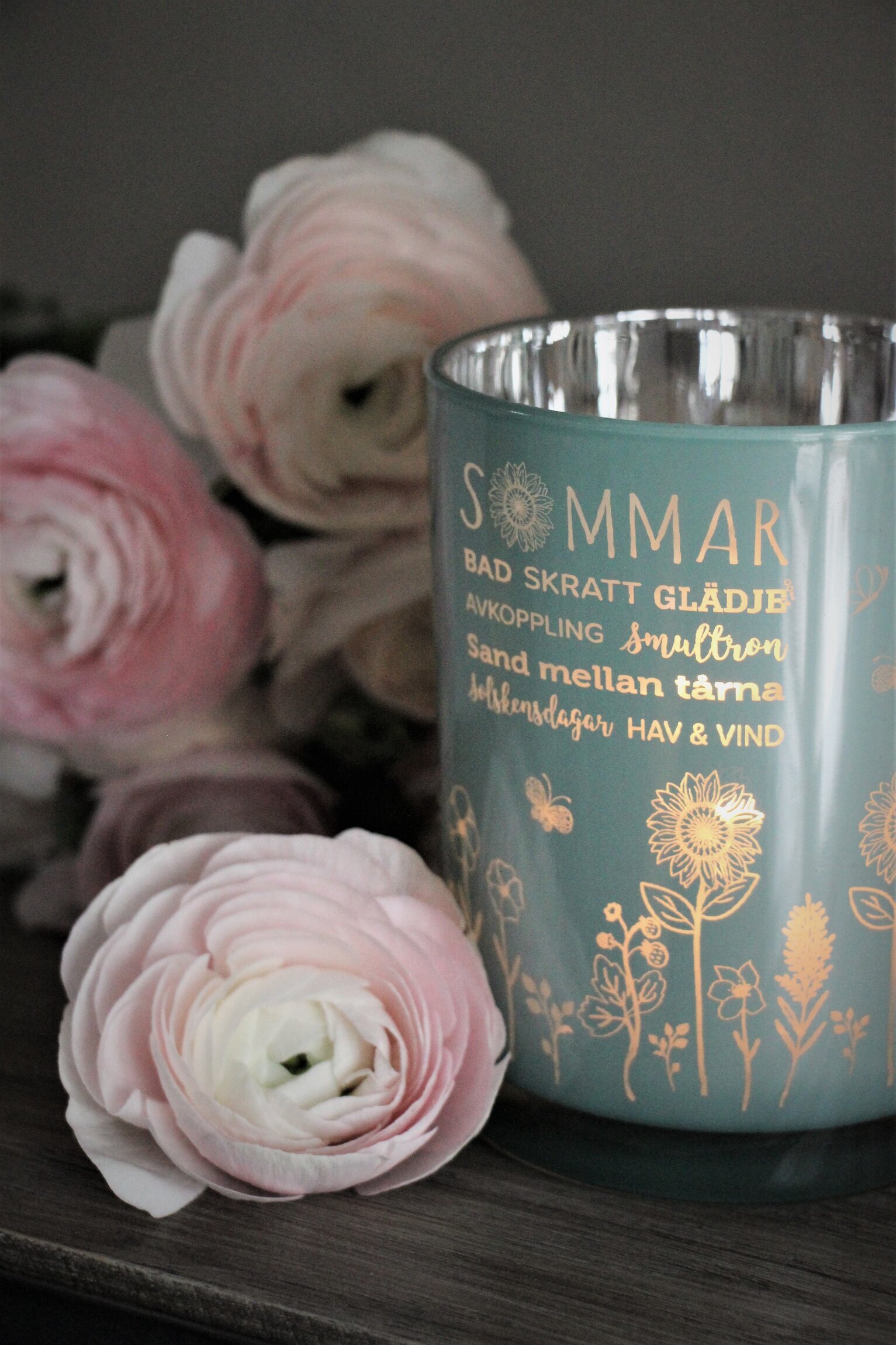 Ljuslykta med ljuvliga ord om sommar i aqua finish från Majas Cottage. Text: Sommar - bad skratt glädje avkoppling smultron sand mellan tårna solskensdagar hav & vind. Läs mer