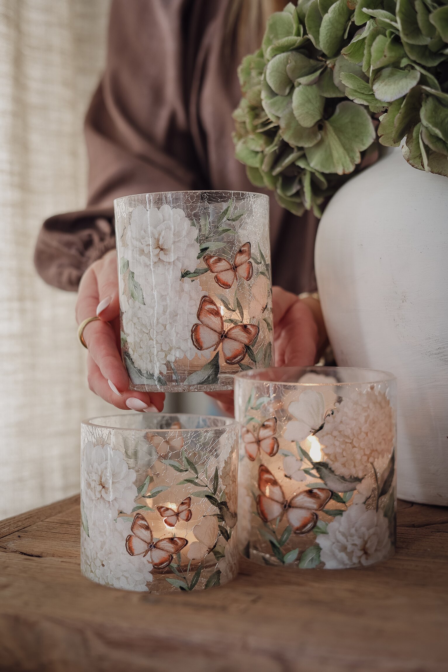 Majas vackra ljuslykta med hortensior och fjärilar skapar en varm och rofylld känsla i hemmet. Läs mer