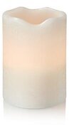Ljuset har en naturlig och enkel form, med en slät textur som ger ett subtilt och nedtonat utseende. Det översta partiet av lyktan är utformat med en vågig kant som efterliknar en smältande stearinkant. Ljuset från den inre LED-lampan sprider sig jämnt genom lyktans material, vilket skapar en tilltalande visuell effekt som kan liknas vid ett traditionellt stearinljus som lyser i skymningen. Detta softa sken bidrar till en avslappnande atmosfär i alla rum.