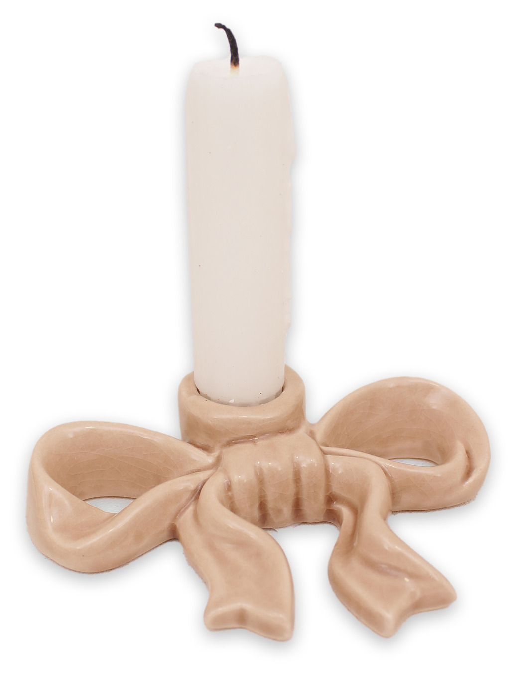 Ge hemmet en elegant och lekfull detalj med denna ljusstake i form av en rosett. Tillverkad i glaserad keramik, kombinerar den tidlös charm med modern design och blir en vacker blickfångare på bordet, i fönstret eller på hyllan. Den mjuka formen och den dekorativa rosetten gör att ljusstaken passar perfekt både till vardag och fest.