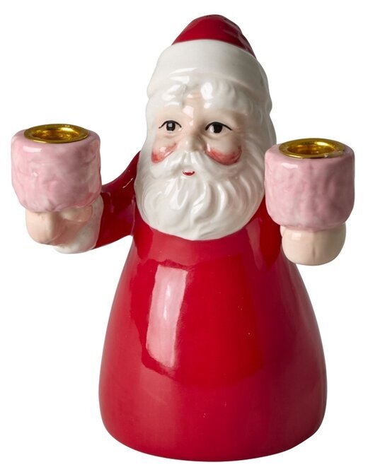 Sprid extra julglädje med denna charmiga tomte i keramik som har plats för två stycken julgransljus. Med sitt vänliga uttryck och klassiska röda dräkt blir den en härlig dekoration på bordet, fönsterbrädan eller i julens dukningar.