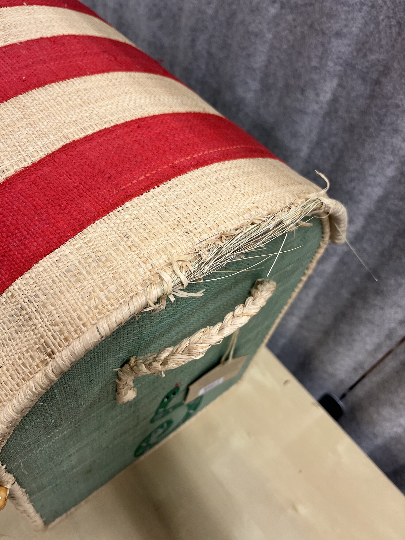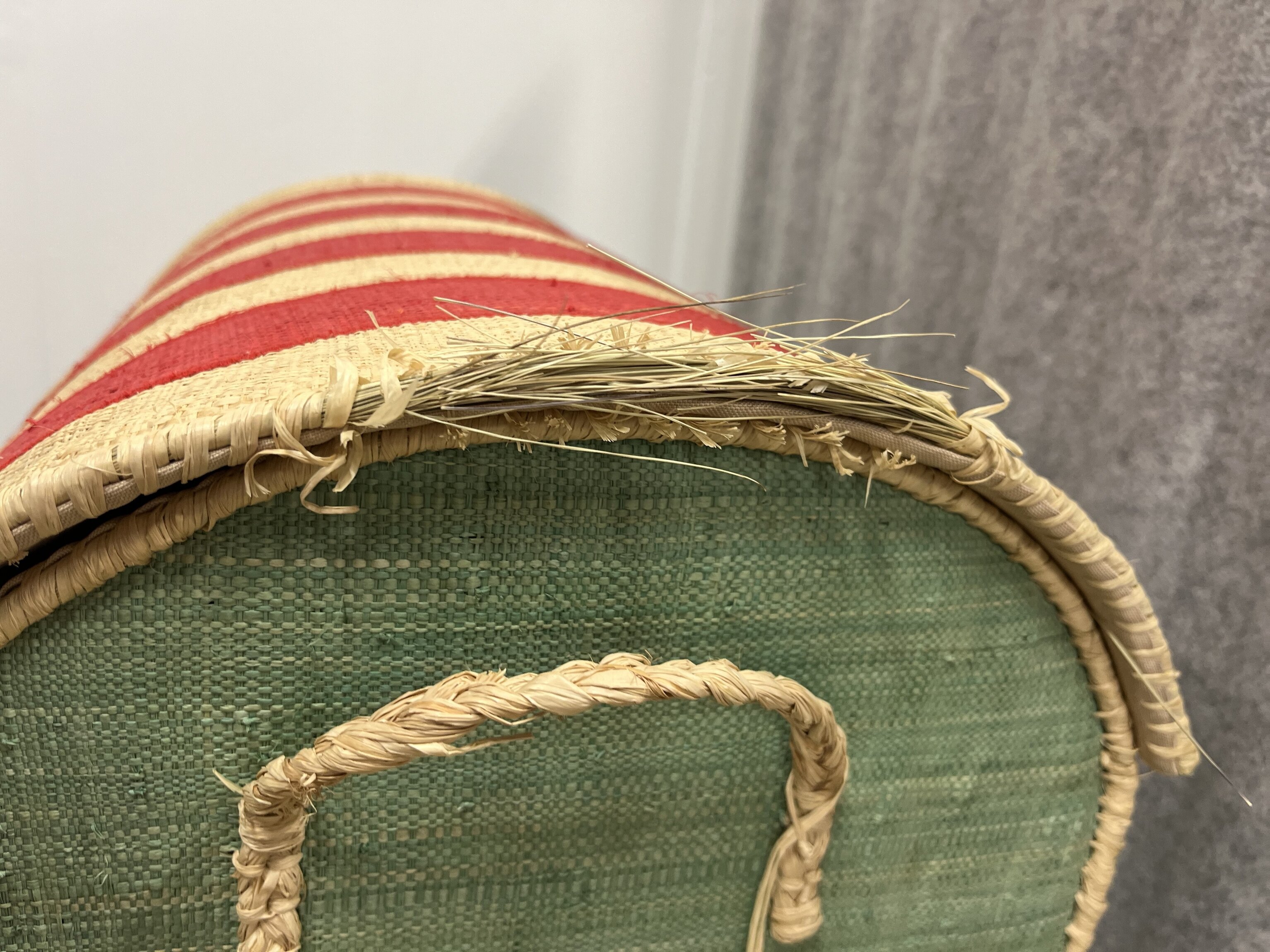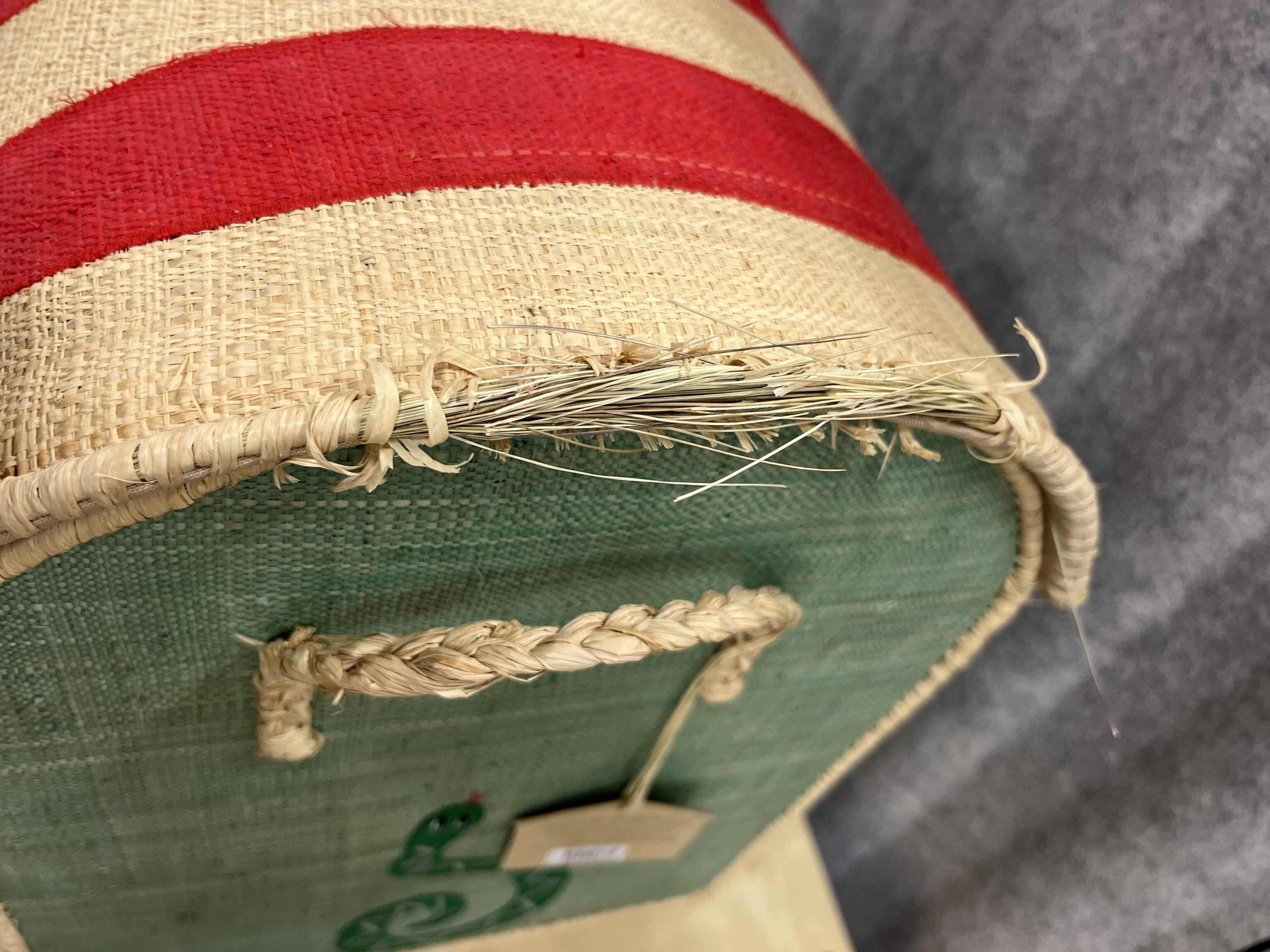 Flätningen har släppt något upptill längs korgens kant