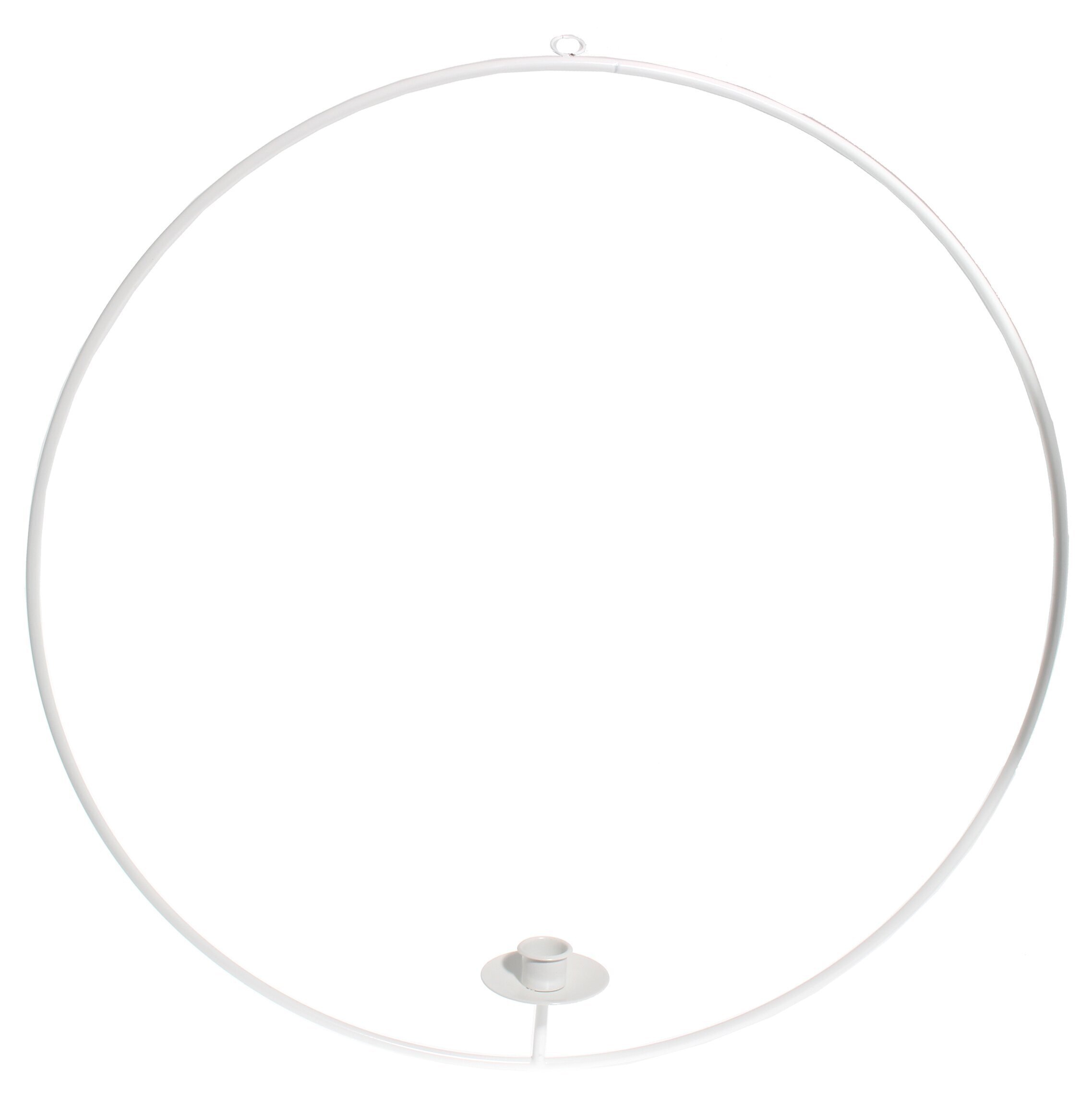 I det nedre segmentet av ljusringen finns en hållare avsedd för ett ljus. Denna hållare är också vit och är strategiskt placerad för att hålla ljuset stadigt på plats. Det är tydligt att hållaren är designad för att smälta in i den övergripande ringen, vilket gör den både funktionell och diskret. Hållarens placering balanserar designen och förhindrar att något distraherar från den cirkulära formen.
