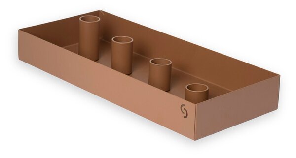 Stilren ljusstake i brun metall från Storefactory, med fyra magnetiska ljushållare som enkelt kan flyttas om. Den rektangulära formen gör den perfekt som mittpunkt på matbordet eller sideboardet.