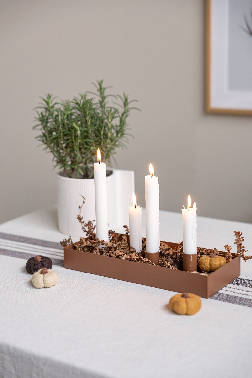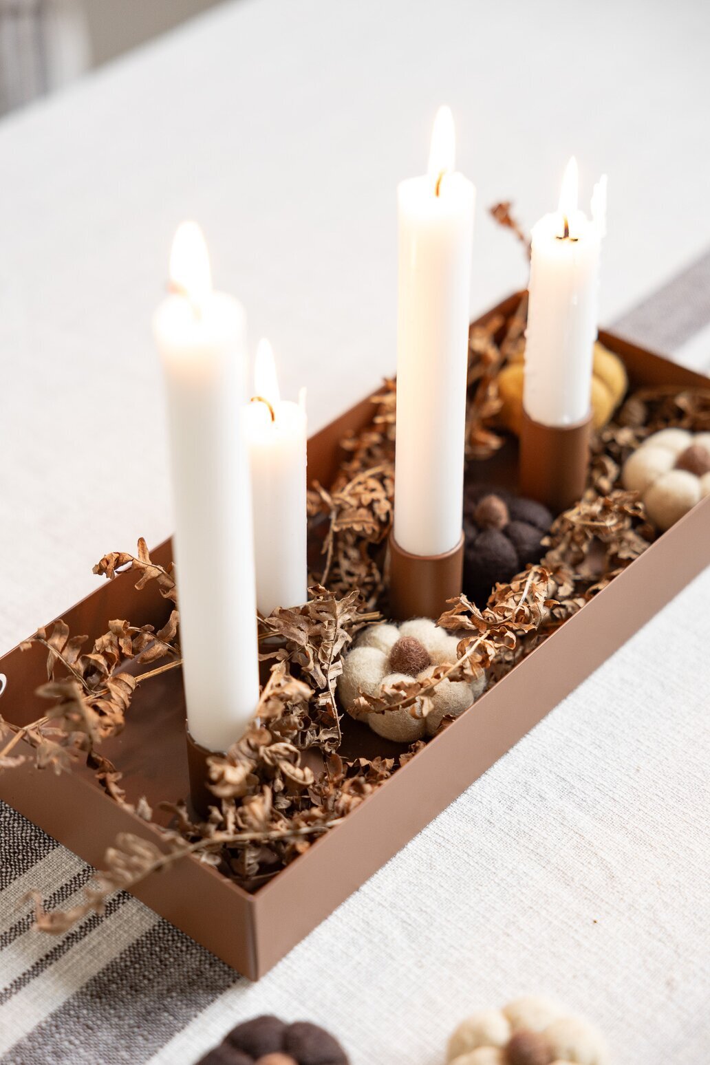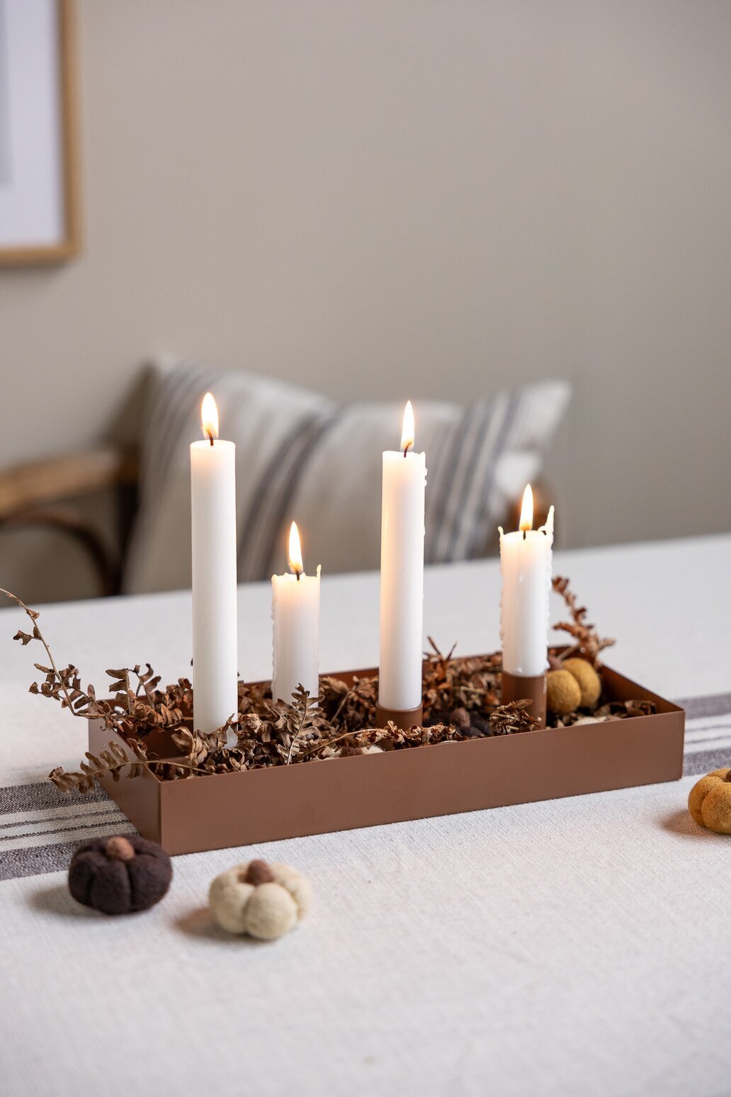 Fyll med äpplen, kottar, mossa eller grankvistar för en varm och personlig känsla – eller låt den stå minimalistiskt för ett rent och modernt uttryck. Tack vare de magnetiska hållarna kan du alltid anpassa arrangemanget efter säsong och tillfälle.