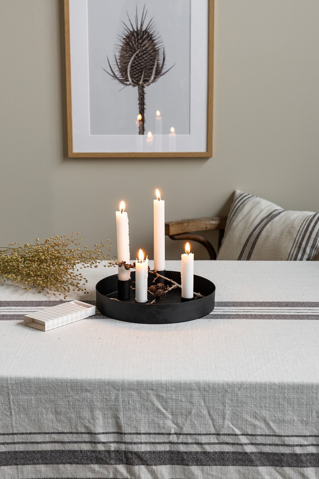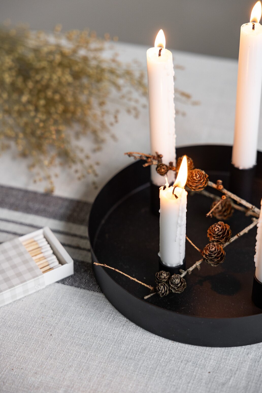 Sund är en modern ljusstake i svart metall från Storefactory med fyra magnetiska ljushållare som gör det enkelt att flytta om och skapa din egen personliga stil. Den rena designen gör den lika vacker året runt – som adventsljusstake under vintern eller som en stilfull detalj på bordet resten av året.