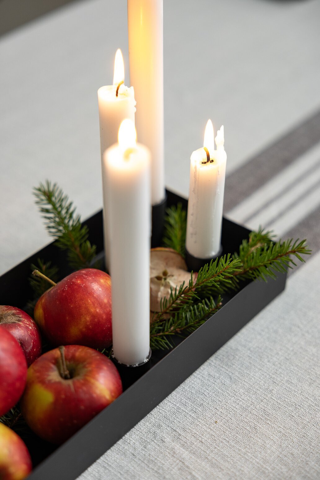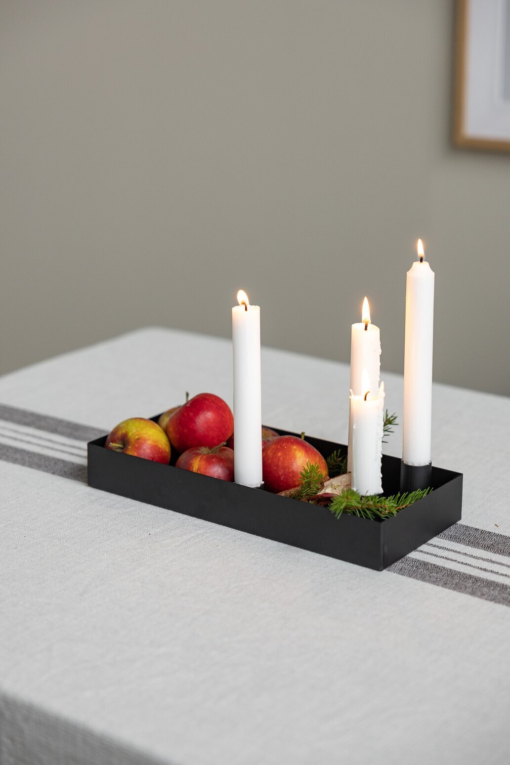 Stilren ljusstake i svart metall från Storefactory, med fyra magnetiska ljushållare som enkelt kan flyttas om. Den rektangulära formen gör den perfekt som mittpunkt på matbordet eller sideboardet.